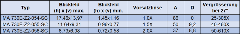 Mit den Zoom-Optiken kann das Blickfeld schnell genau wunsch entsprechend eingestellt werden, während eine feste Arbeitsdistanz gewährleistet ist.